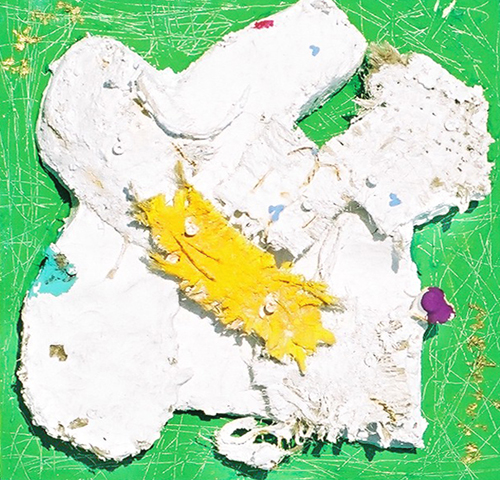 2004 年 素材:石膏 コーヒー豆の麻袋 顔料 針金