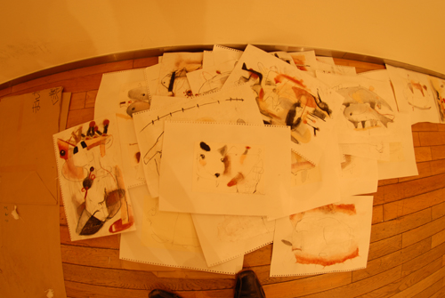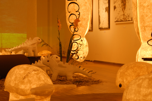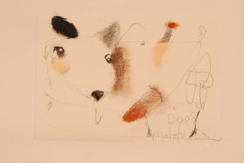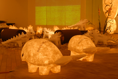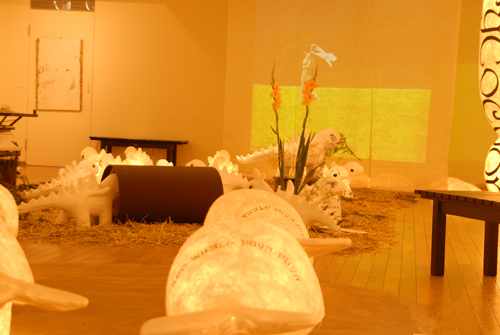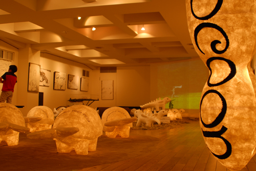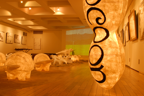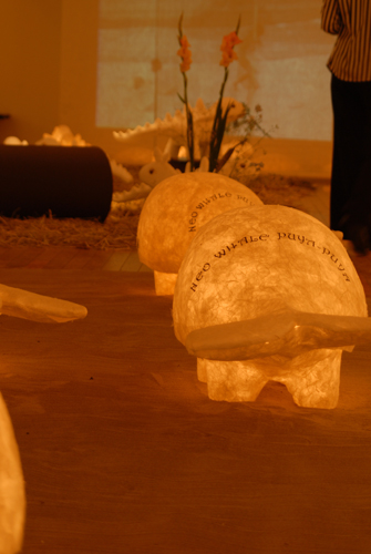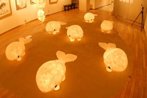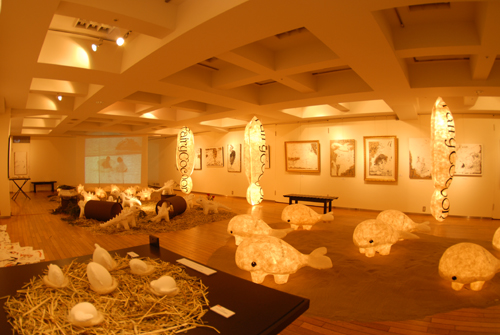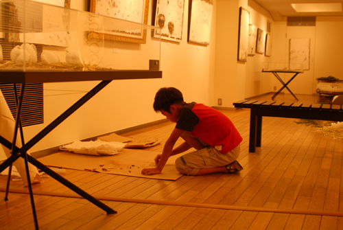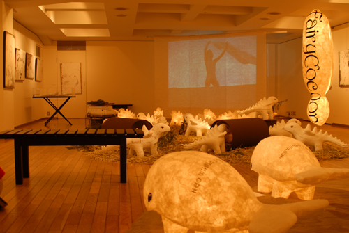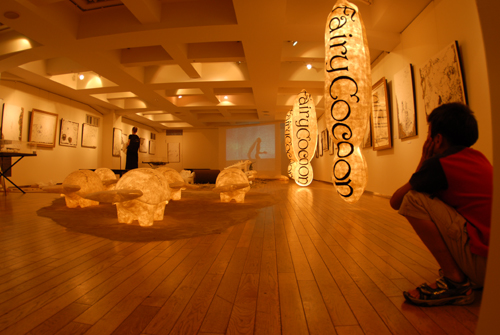 2008 年 素材:因州和紙 映像 灯り 天使の墨絵 コンテ素描