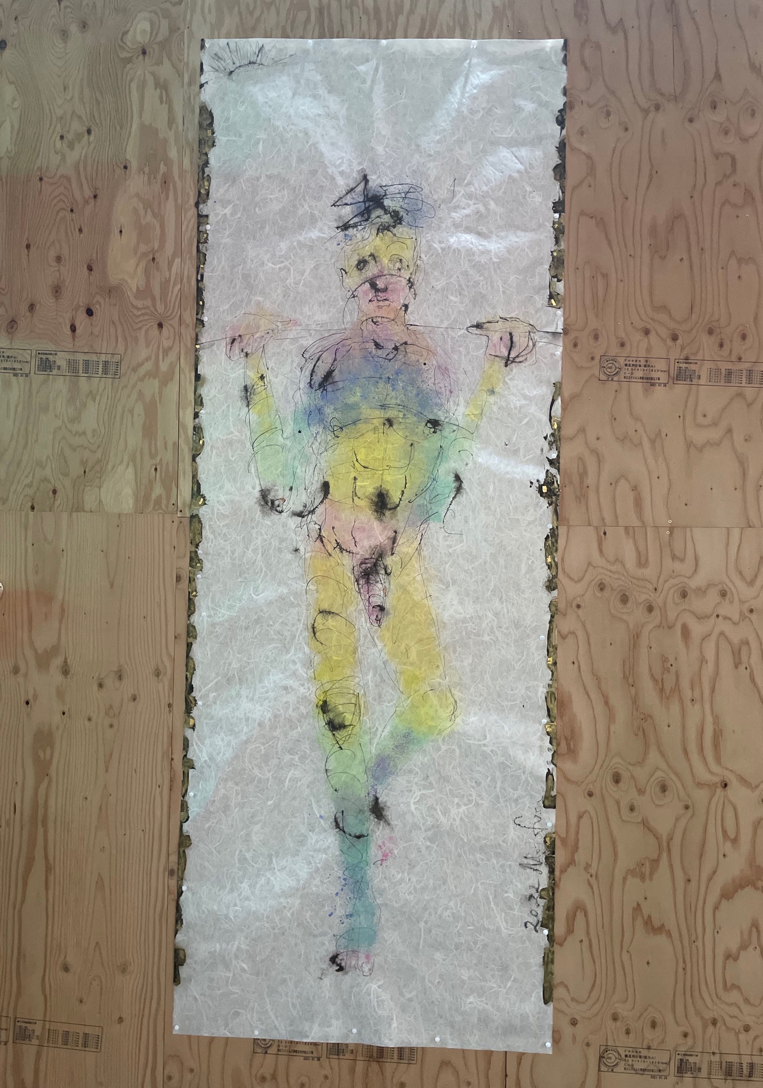 2022年 素材:テラコッタ 墨絵: 因州和紙 彩色